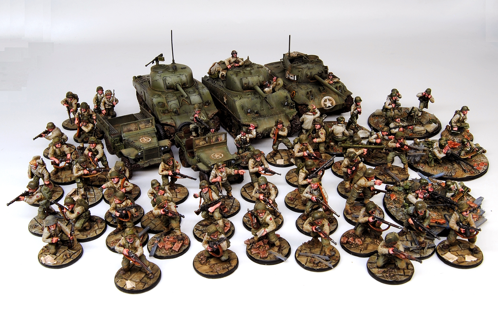 Die Amerikaner sind fertig für mein Monte Cassino 1944-Projekt. Wie das immer so ist, werden sicher im Lauf der Zeit noch 1-2 Sachen dazu kommen. Aber die Armee ist breit aufgestellt und ich kann verschiedene Listenkonzeptionen spielen.