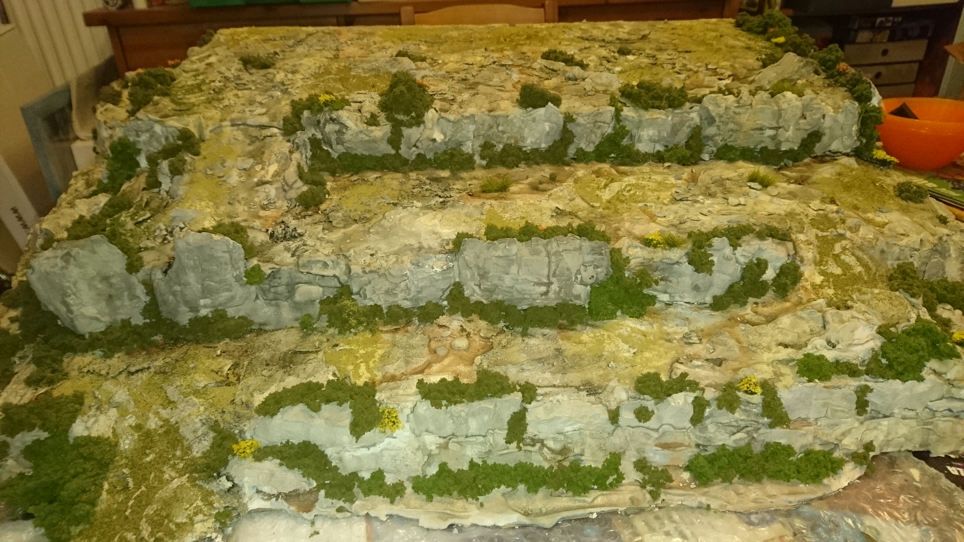 Also fing ich mir an Gedanken zu machne, wobei hier die Spielbarkeit ein wichtiges Thema war. Natürlich kann man ganz tolle Brge machen. Aber versucht dort dann mal ein Squad in Ein Zoll Abstand aufzustellen..