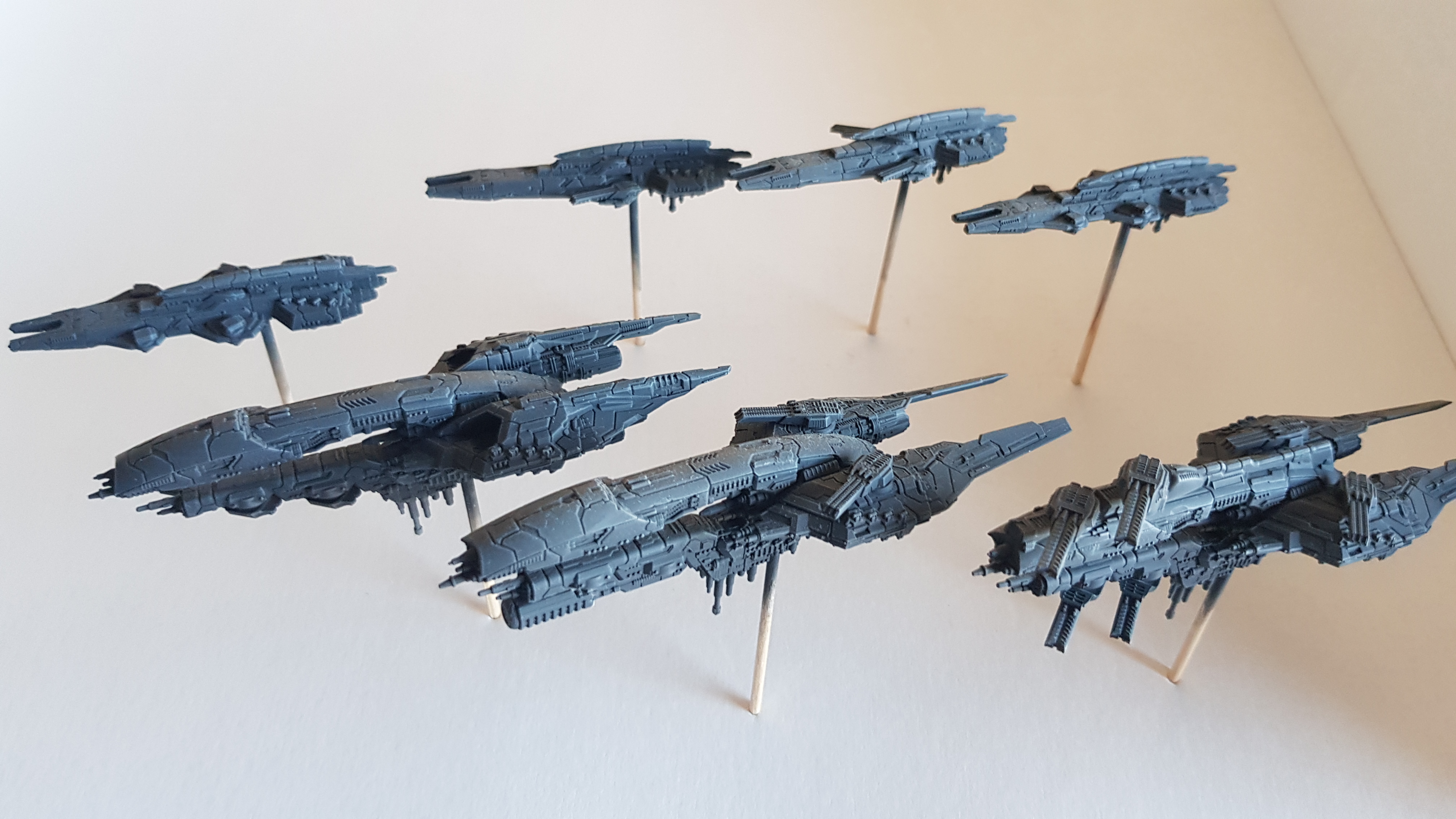 Die Modelle der Erweiterung sind montiert und Grundiert. Der Rest noch im Gussrahmen.