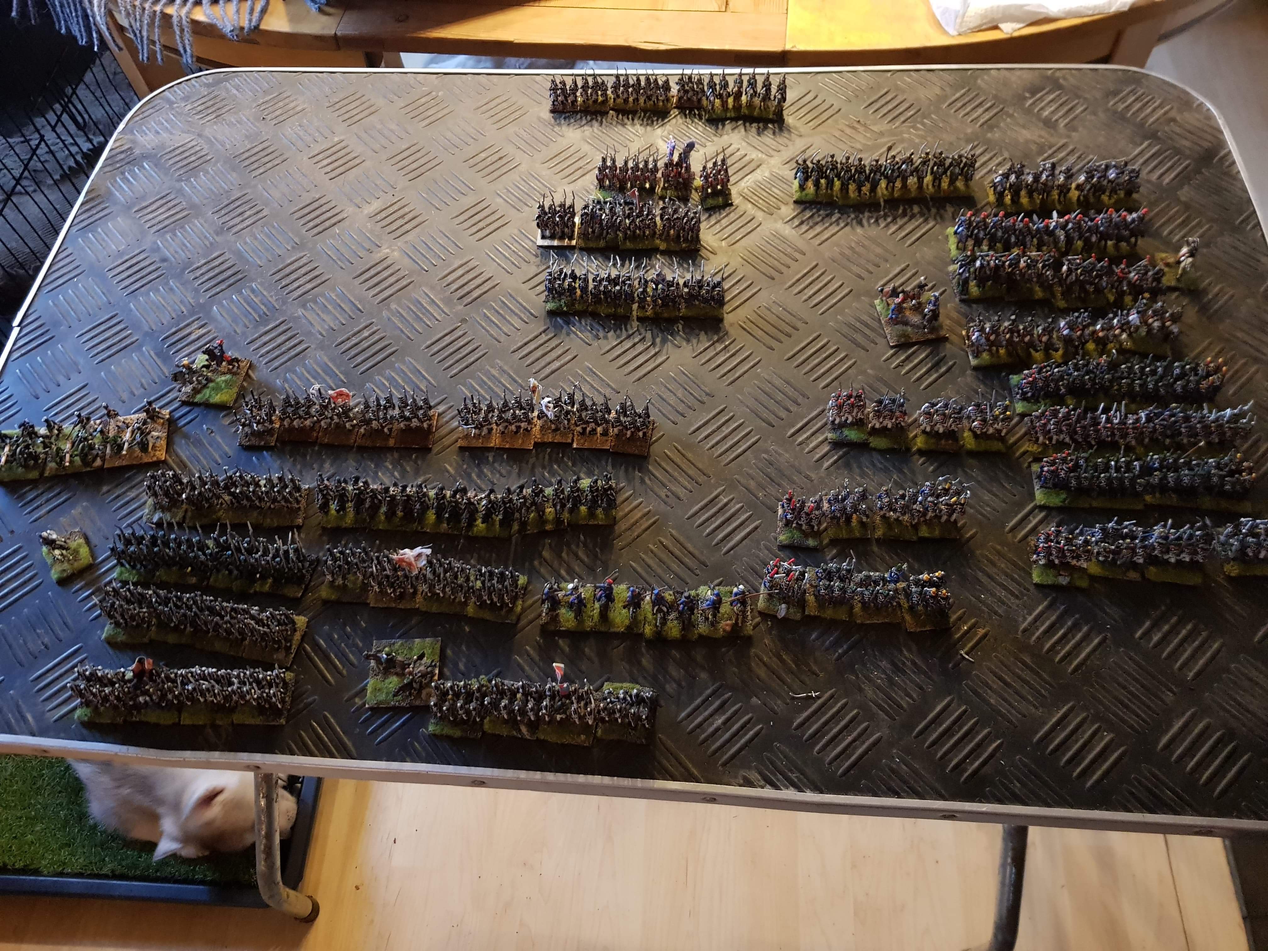 I'm selling a lot of 15mm Napoleonics. They are a mix of AB, fantasin and blue moon I think. They are painted in various styles, some have standard 3 layer thing, some have just black line shading. Basing for infantry varies between 8 and 6 per base battalions are either 24 or 32 strong.