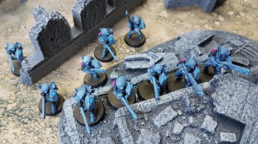 Zumal sind die Tau spieltechnisch und farblich ein wunderbarer Kontrast zu meinen roten(und güldenen und schwarzen) BloodAngels und meiner grünen rostigen DeathGuard.