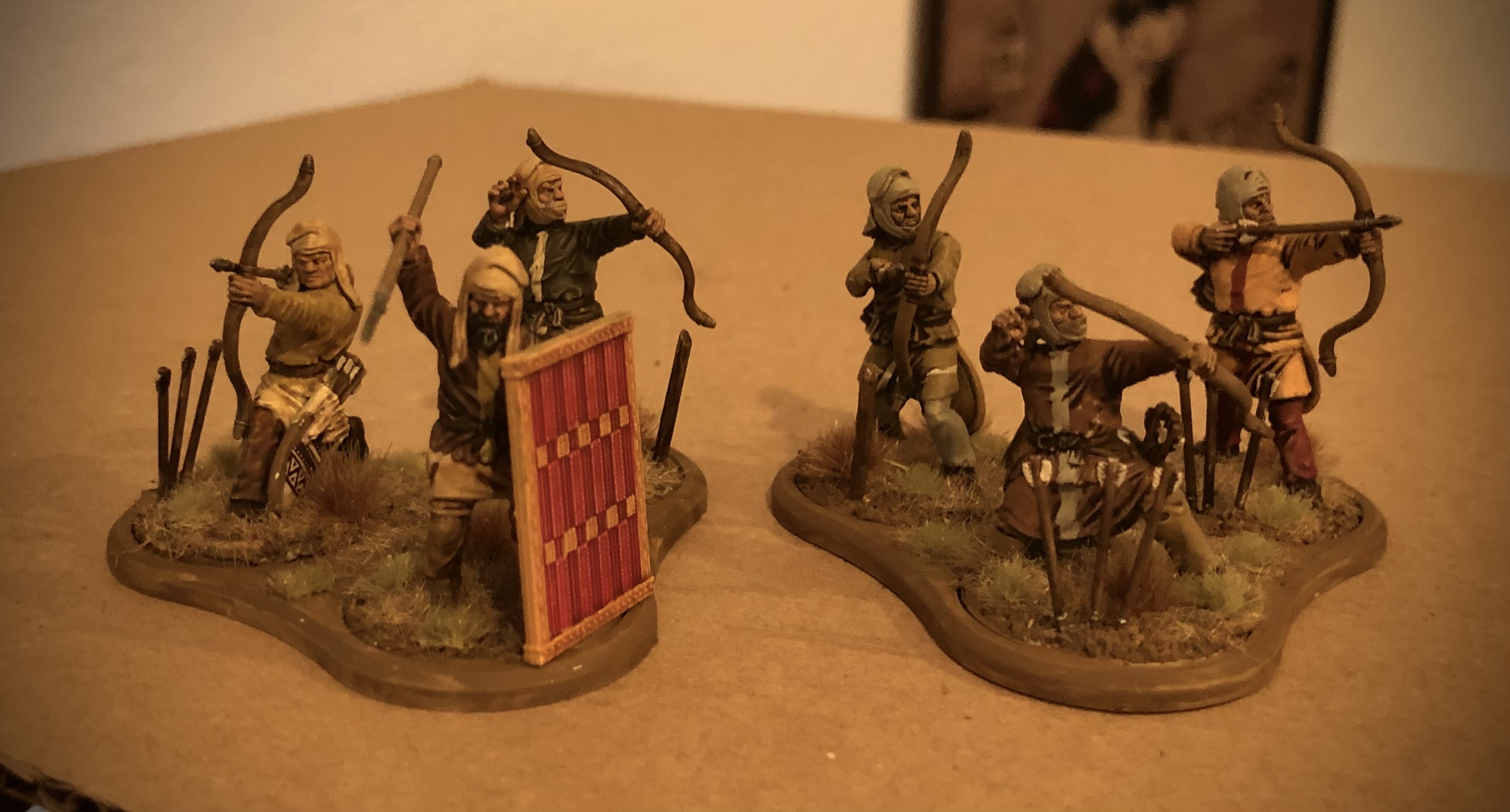 heute habe ich meine Truppe "Perser" für Mortal Gods fertiggestellt. Die Miniaturen sind zum größten Teil von Victrix, ein kleinerer Teil von Footsore. Die Truppe besteht aus einem Anführer, einem Helden, 3 Speerträgern ("Nicht-Speerträger" :-D), 3 Unsterblichen, 3 Bogenschützen, einem 3er Trupp "Sparabara" (die mit dem großen Schild) und 3 Ägyptischen Marinesoldaten (JA...Ägypten war im 5 Jh.v.Chr. ein Vasall der Perser). Insgesamt sind das knapp 300 Punkte, eine gängige Größe für ein Spiel "Mortal Gods". Für größere Spiele ergänze ich die Truppe mit bis zu 200 Punkten kushitischer Söldner, die ich euch im nächsten Post vorstelle.