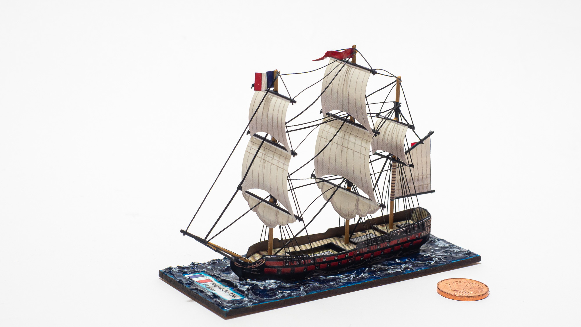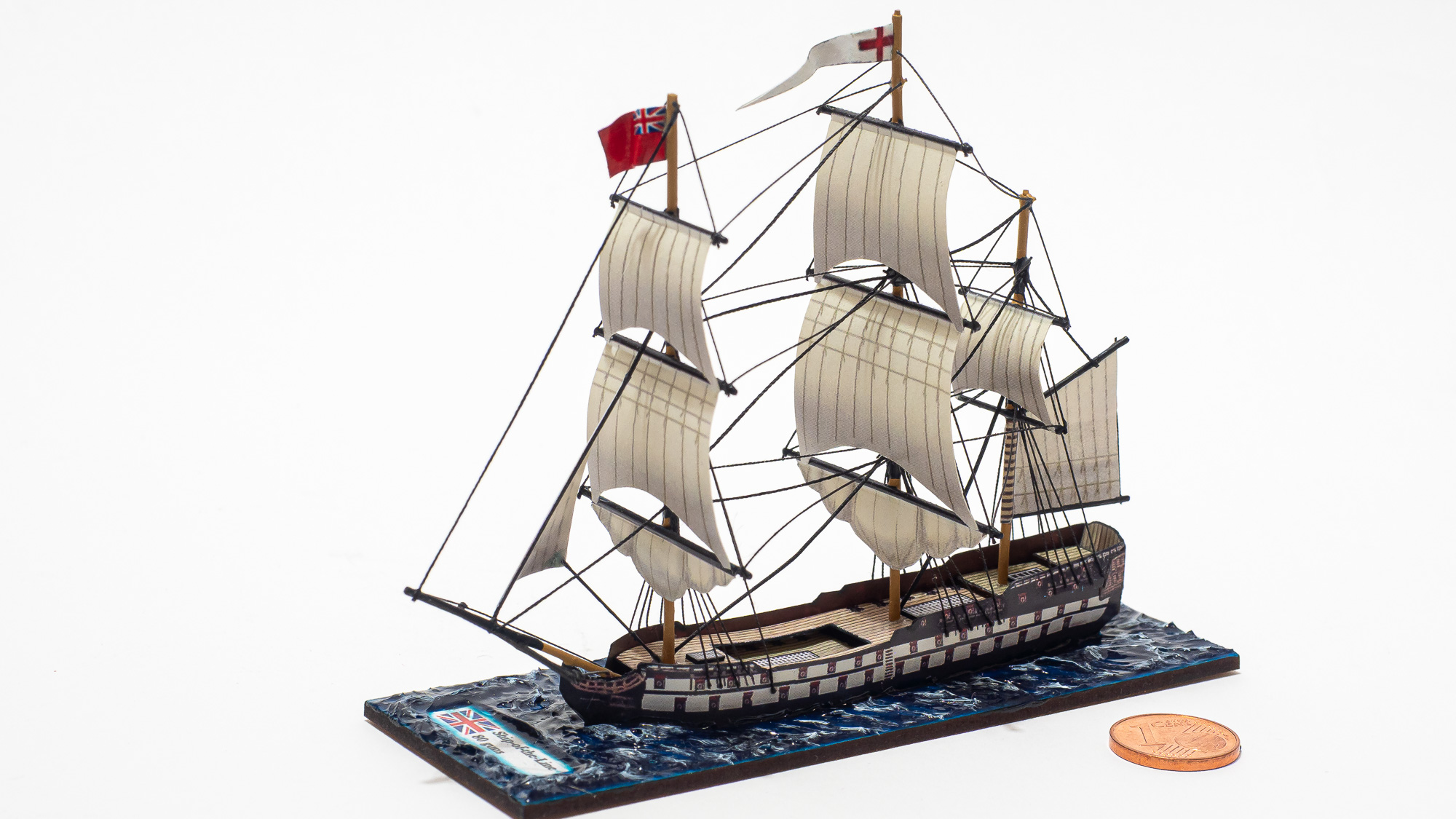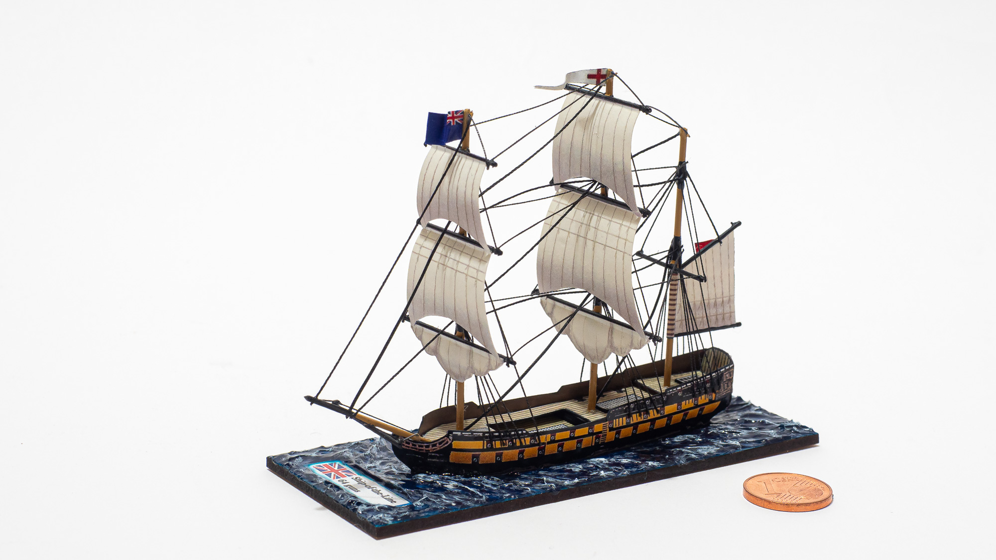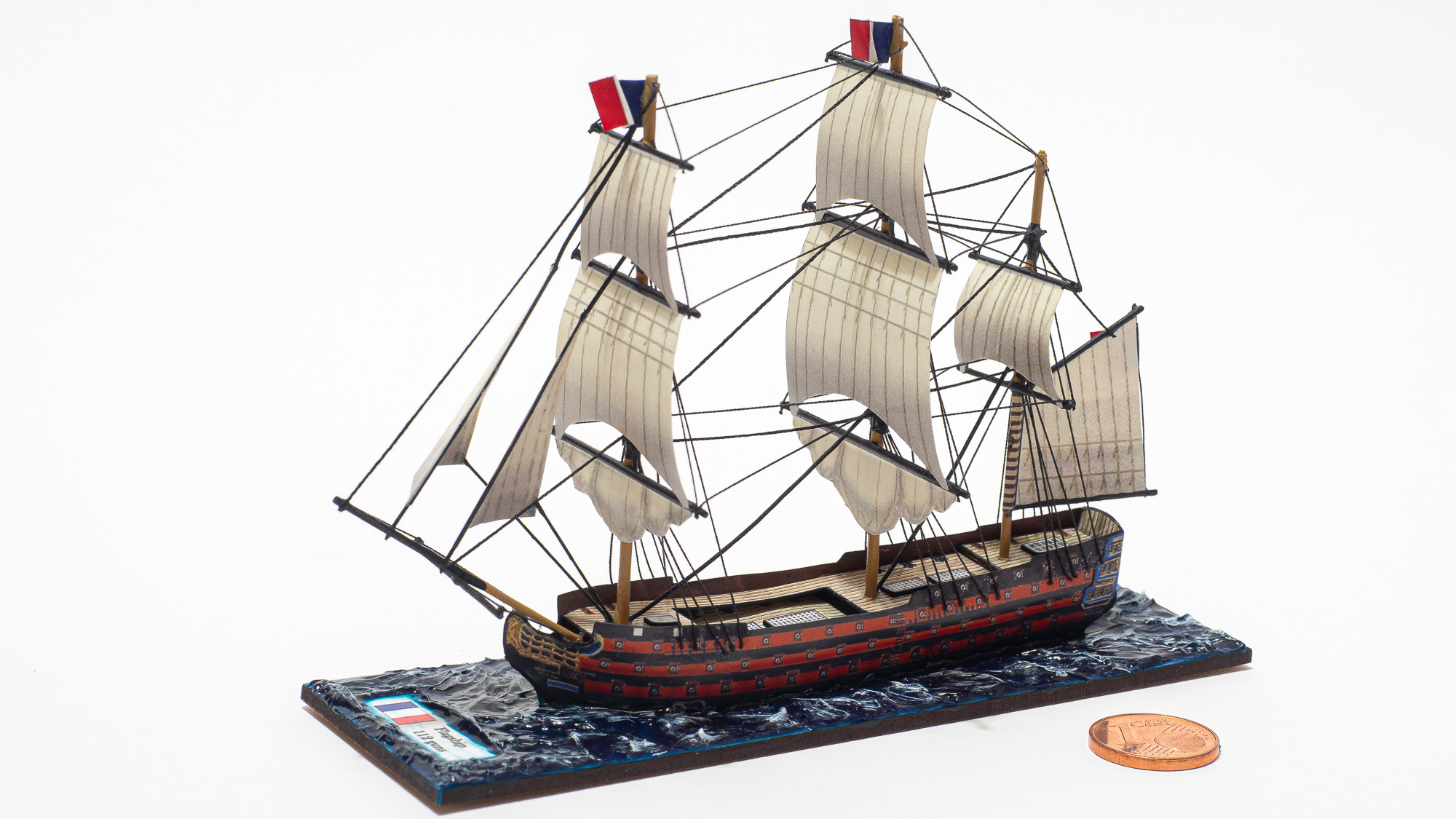 Meine Flotte aus der napoleonischen Ära besteht aus jeweils sechs britischen und sechs französischen Schiffen. Sie stammen weder aus dem 3D-Drucker noch bestehen sie aus Metall, sondern – aus Papier! Es handelt sich um Bastelbögen des sich selbst als "War Artisan" bezeichnenden Jeffrey Knudsen, der in seinem Webshop ein ganzes Arsenal an Schiffen anbietet, alle von ihm selbst entworfen.