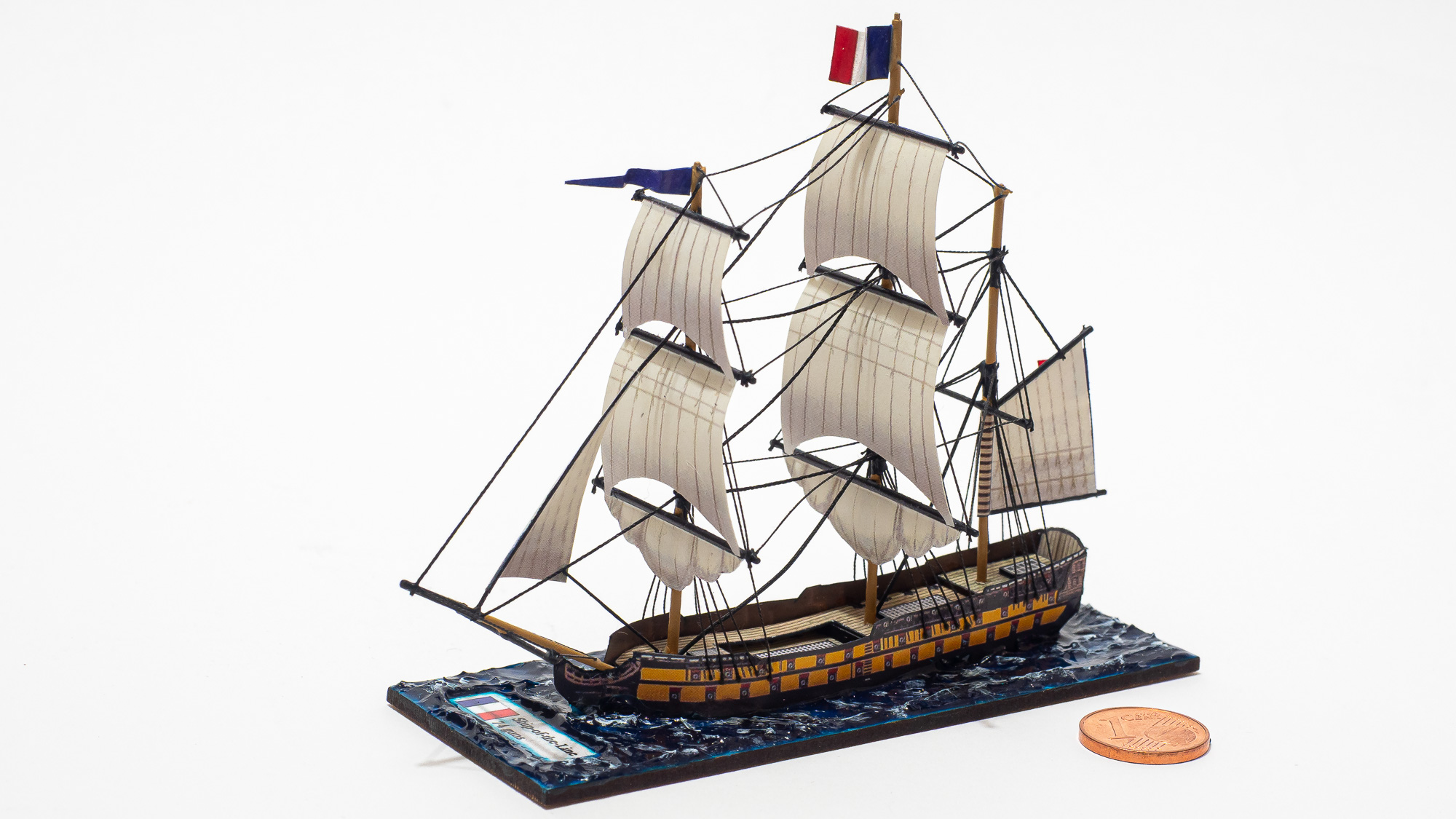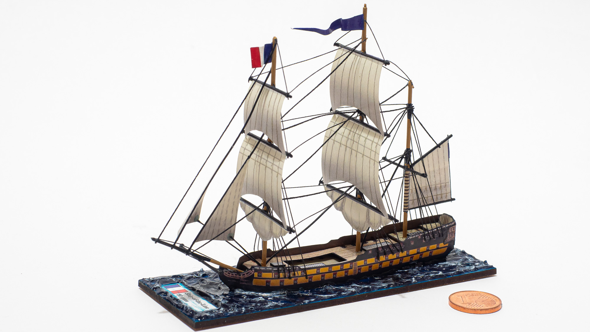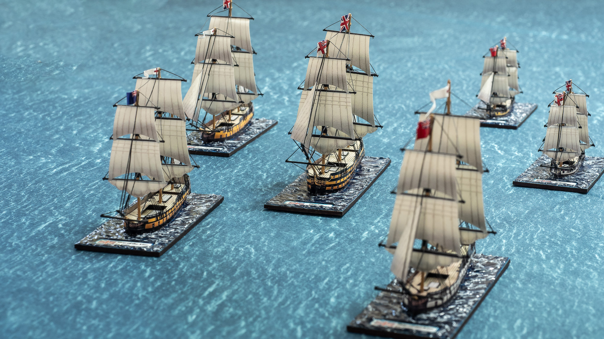 Meine Flotte aus der napoleonischen Ära besteht aus jeweils sechs britischen und sechs französischen Schiffen. Sie stammen weder aus dem 3D-Drucker noch bestehen sie aus Metall, sondern – aus Papier! Es handelt sich um Bastelbögen des sich selbst als "War Artisan" bezeichnenden Jeffrey Knudsen, der in seinem Webshop ein ganzes Arsenal an Schiffen anbietet, alle von ihm selbst entworfen.