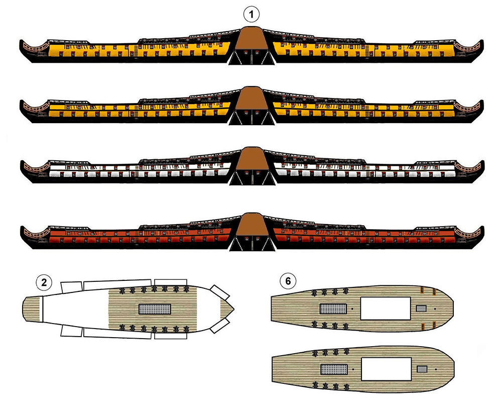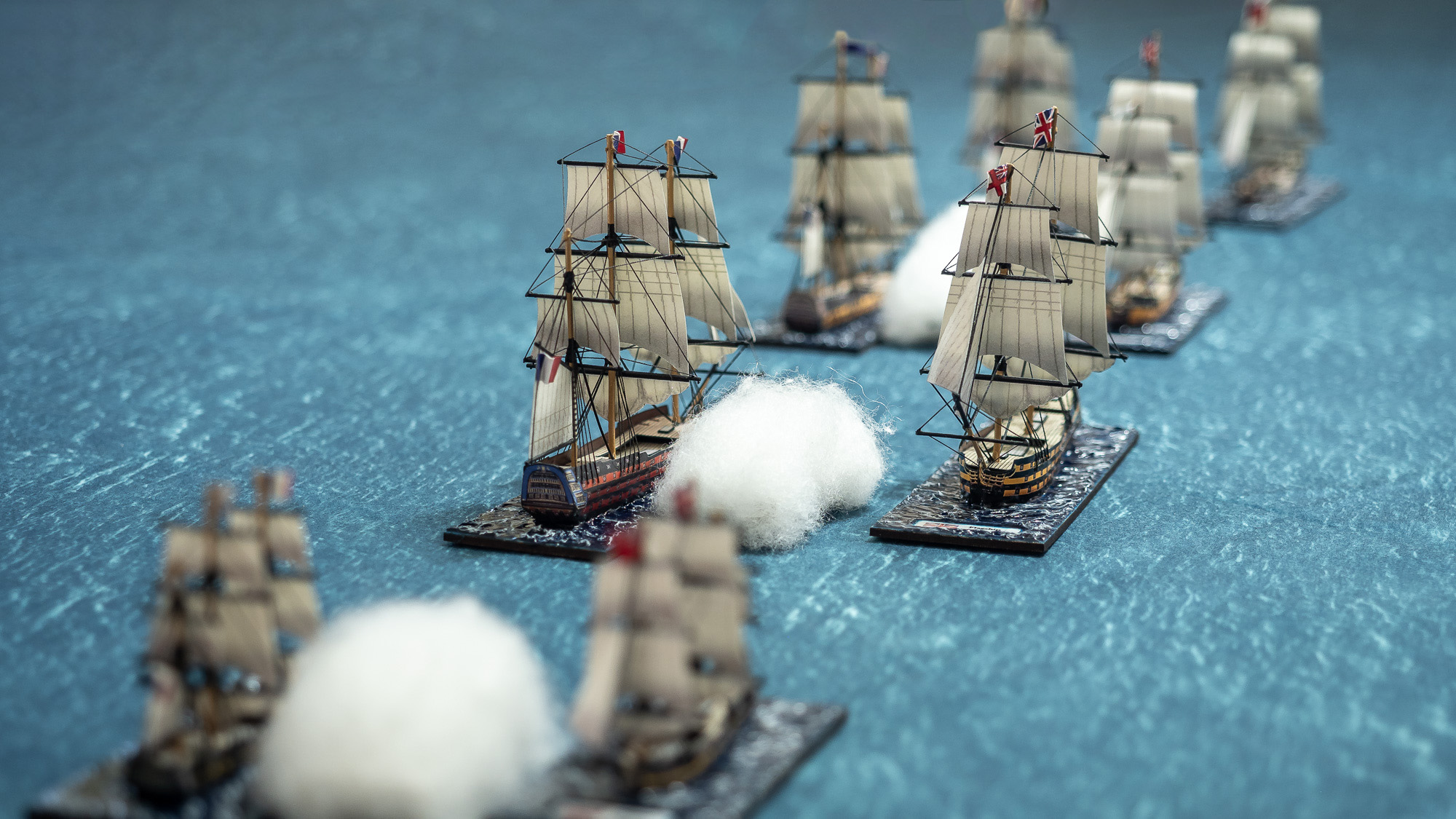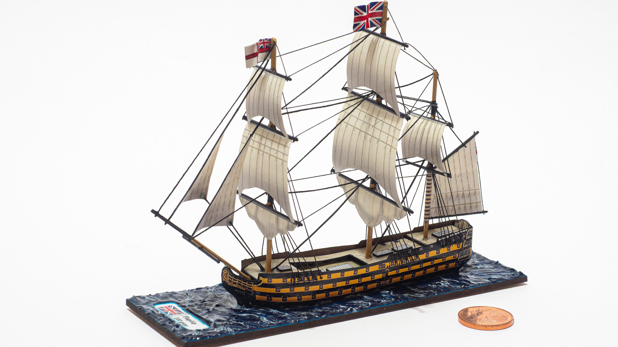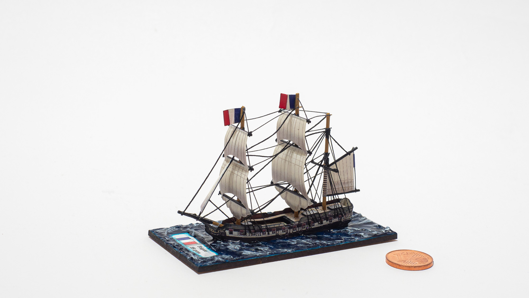 Meine Flotte aus der napoleonischen Ära besteht aus jeweils sechs britischen und sechs französischen Schiffen. Sie stammen weder aus dem 3D-Drucker noch bestehen sie aus Metall, sondern – aus Papier! Es handelt sich um Bastelbögen des sich selbst als "War Artisan" bezeichnenden Jeffrey Knudsen, der in seinem Webshop ein ganzes Arsenal an Schiffen anbietet, alle von ihm selbst entworfen.