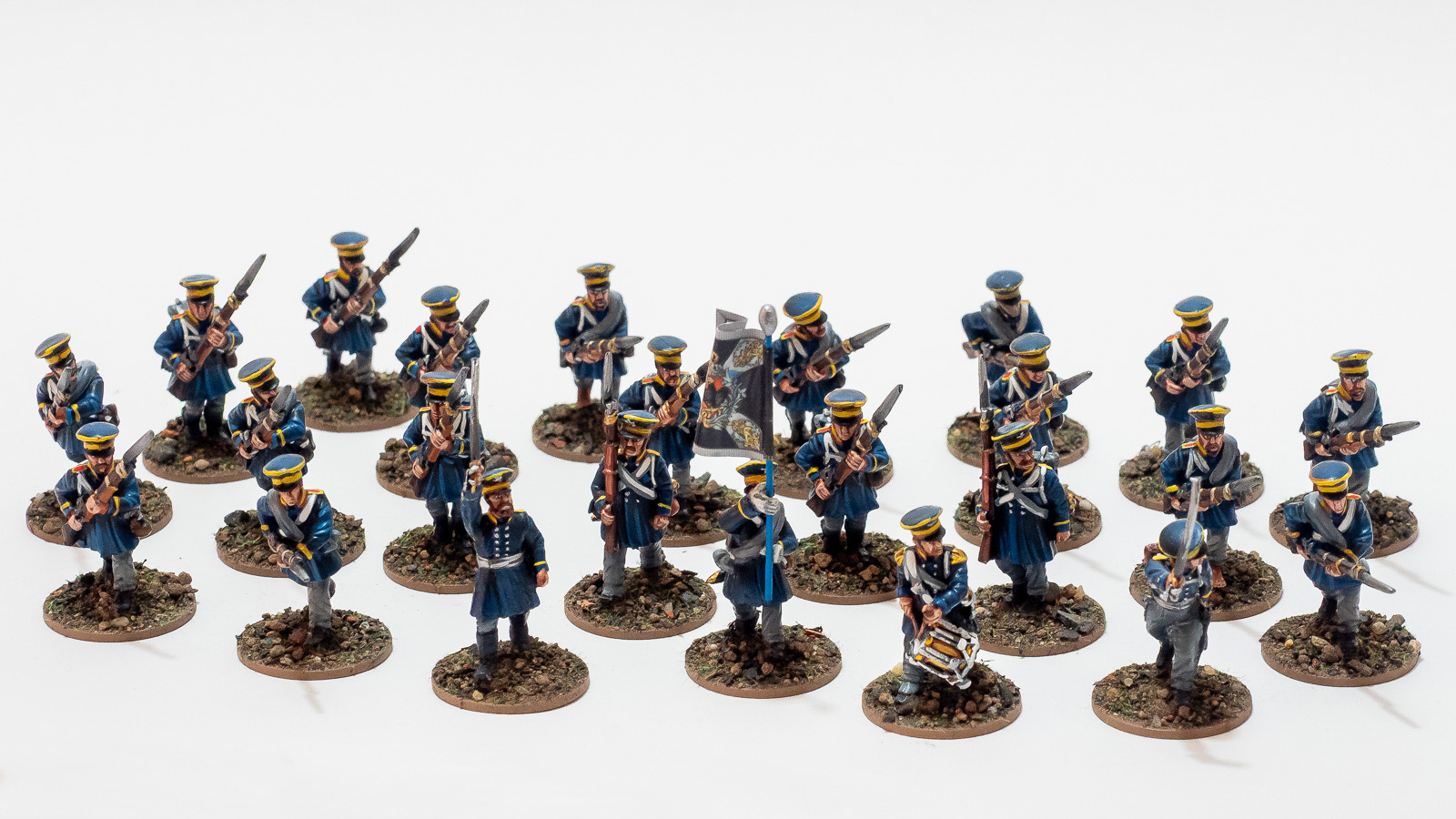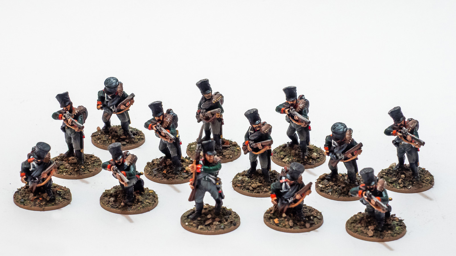 Das sieht nach wesentlich mehr aus, als ich für die andere Schiene bemalt hatte, aber ich verstehe das auch so, dass es eher ein Fundus ist für dich, aus dem du beispielsweise Shakos & Bayonets spielen kannst.